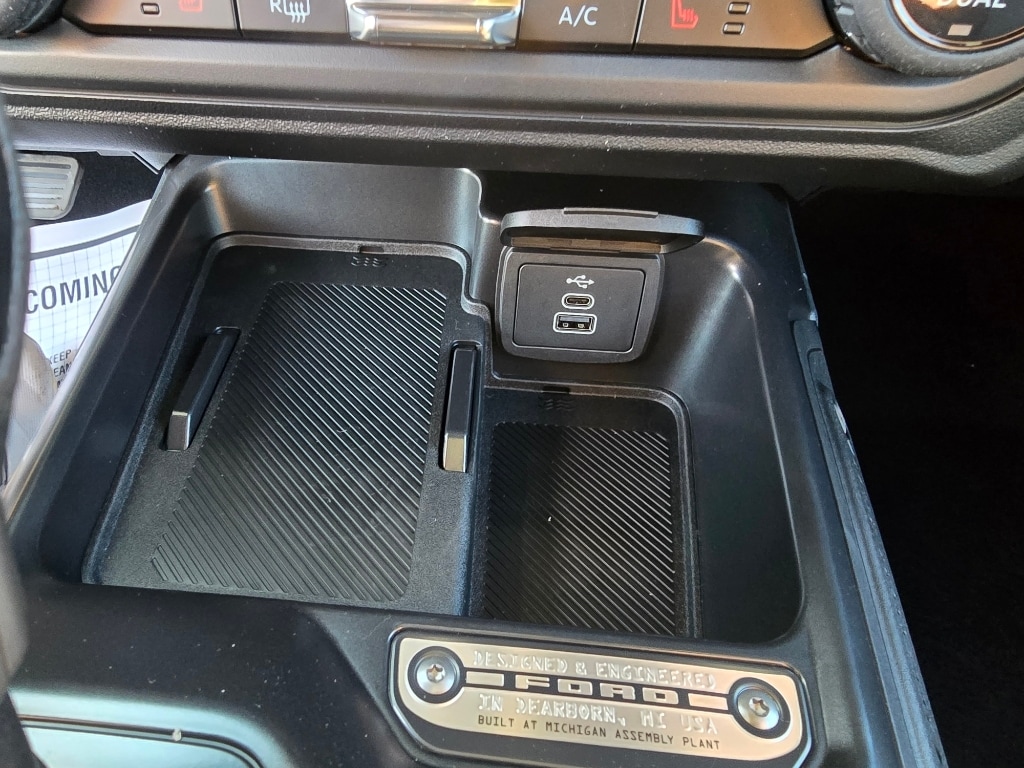 Equipment Group 222A Mid Package: 17 Carbonized Gray-Painted Aluminum Wheel; Rear Parking Sensors; Pro Power Onboard - 400W; Dual Smart Charging USB Ports; 2.3L EcoBoost I-4 Engine; Front Row Heated Seats; Driver and Front Passenger Illuminated Sliding Visor Vanity Mirrors; AM/FM Stereo; Dual-Zone Electronic Automatic Temperature Control; Connected Navigation; P255/75R17 A/T Tires; Ambient Footwell Lighting; Remote Start System; Cloth Bucket Seats; 2-Door Intelligent Access with Lock/unlock. Ford Co-Pilot360: Auto High-Beam Headlamps; Rear View Camera; Pre-Collision Assist with Automatic Emergency Braking; Blind Spot Information System (BLIS); Lane-Keeping System. Carbonized Gray Molded-In-color Hard Top. Hard Top Sound Deadening Headliner. **Equipment listed is based on original vehicle build and subject to change. Please confirm the accuracy of the included equipment by calling the dealer prior to purchase.**