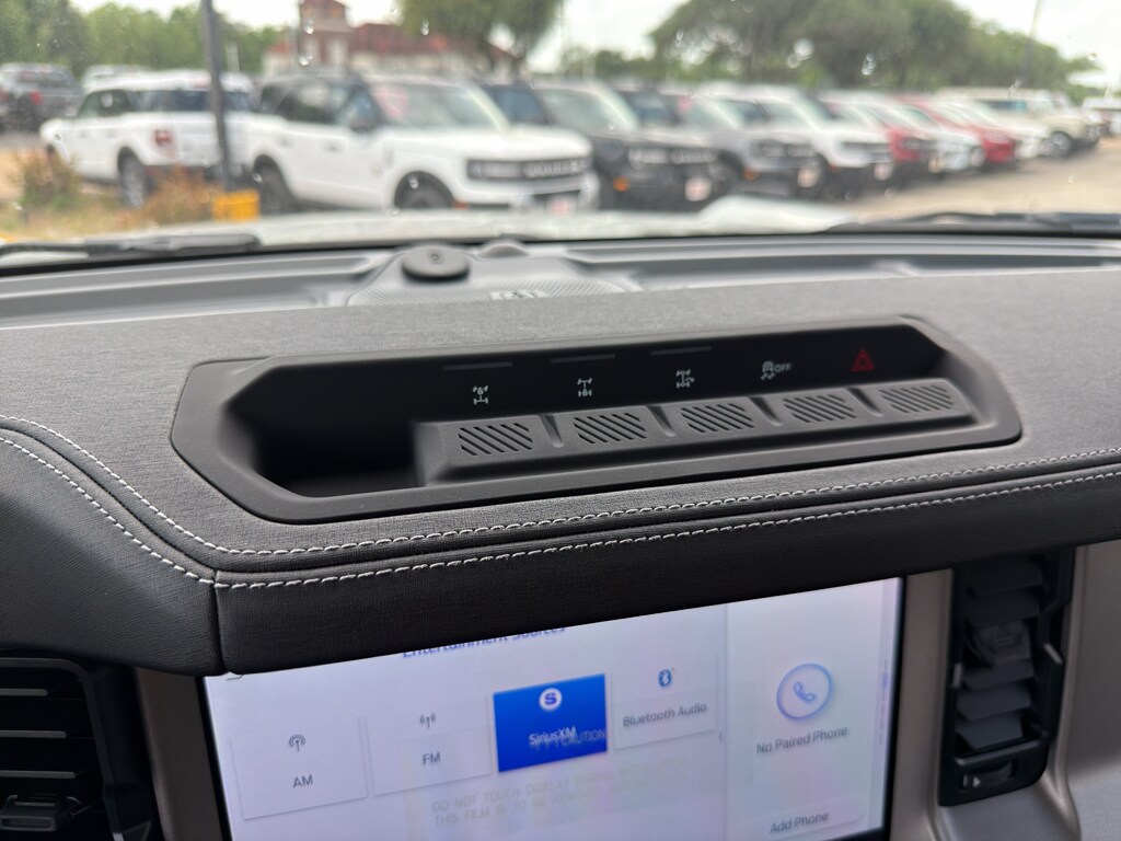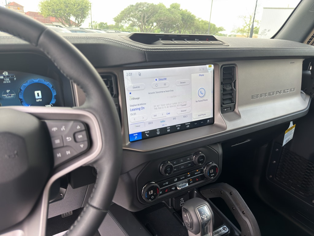 The installed navigation system will keep you on the right path. The rear parking assist technology on this 2026 Ford Bronco will put you at ease when reversing. The system alerts you as you get closer to an obstruction. Start the vehicle from inside with remote start. This 2026 Ford Bronco features a hands-free Bluetooth phone system. The leather seats in this Ford Bronco are a must for buyers looking for comfort, durability, and style. The Ford Bronco's Cross-Traffic Alert: Safeguarding you from unexpected traffic when reversing. This Ford Bronco is pure luxury with a heated steering wheel. This 2026 Ford Bronco comes equipped with Android Auto for seamless smartphone integration on the road. This 1/2 ton suv has auto-adjust speed for safe following. See what's behind you with the back up camera on this vehicle. An off-road package is equipped on this model. The Ford Bronco offers Apple CarPlay for seamless connectivity.