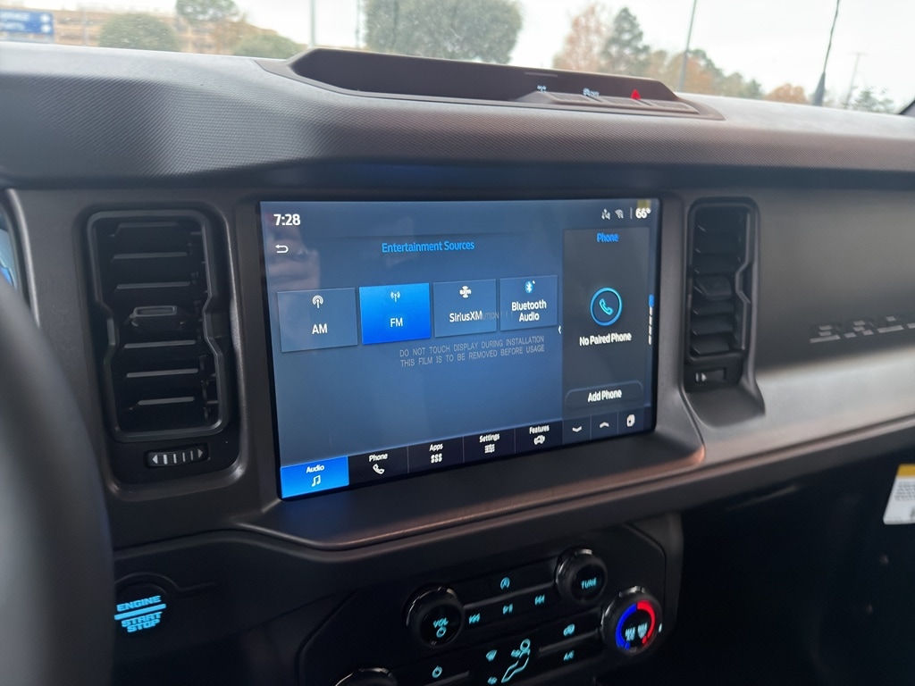 Apple CarPlay: Seamless smartphone integration for this vehicle - stay connected and entertained on the go! An off-road package is equipped on the vehicle. Never get into a cold vehicle again with the remote start feature on this vehicle. The vehicle features a hands-free Bluetooth phone system. See what's behind you with the back up camera on this Ford Bronco. The Ford Bronco comes equipped with Android Auto for seamless smartphone integration on the road. This 2025 Ford Bronco has four wheel drive capabilities. This 1/2 ton suv has a 4 Cyl, 2.3L high output engine. This 1/2 ton suv embodies class and sophistication with its refined white exterior. It features cruise control for long trips. Electronic Stability Control is one of many advanced safety features on this vehicle. The high efficiency automatic transmission shifts smoothly and allows you to relax while driving. Enjoy the tried and true gasoline engine in this vehicle.