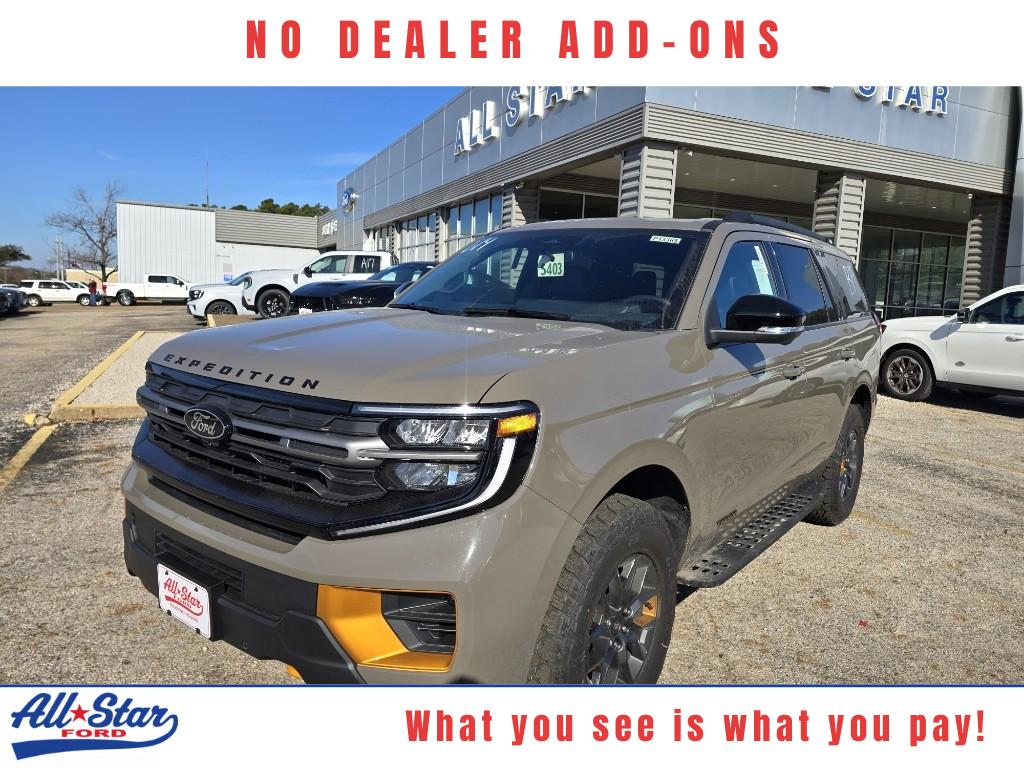 2026 Ford Expedition Tremor 4WD V6 3.5L â" Palestine, TX. Built for capability and comfort, this Ford Expedition Tremor pairs a turbocharged V6 3.5L engine with advanced 4WD system to deliver confident performance on pavement and off-road. The rugged Tremor suspension and traction features provide composed handling while towing or exploring rural trails around Palestine and East Texas. Inside, premium leather seats and a heated steering wheel create a refined cabin that keeps occupants comfortable in every season. Integrated navigation makes route planning effortless, whether you're commuting or heading out for a weekend adventure. Remote start ensures the climate-controlled interior is ready when you are, and Android Auto keeps smartphones seamlessly connected for calls, messaging, music, and compatible apps. Safety-minded and tech-forward, this Ford Expedition Tremor offers versatile cargo and passenger space, advanced towing capability, and modern convenience features to support everyday driving and longer trips. With a commanding presence and functional amenities, it balances utility with upscale touches. Located in Palestine, TX, this 2026 Ford Expedition Tremor is competitively priced and advertised as the best price available â" an outstanding value for buyers seeking performance, comfort, and technology in a full-size SUV. Contact the dealership for details, availability, and to schedule a test drive.