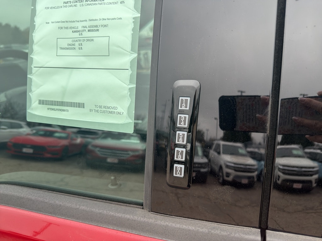 XLT Black Appearance Package: Black Grille; Gray Box Side Decal; Black Exterior Badging; 6 Black Running Boards; Unique Sport Cloth 40/console/40 Front-Seats; 18 Gloss Black Wheels; Body-Color Front and Rear Bumpers; Body-Color Door Handles; Dark Interior Appliques; Floor Shifter. Equipment Group 302A Mid: Wrapped Steering Wheel; Electronic 10-Speed Automatic Transmission; 6. 650 lbs Payload Package GVWR; Intelligent Access with Push Button Start; AM/FM Stereo with SiriusXM 360L; 400W Pro Power Onboard (cab & Bed); Dual-Zone Electronic Automatic Temperature Control; Power-Sliding Rear Window; 275/65R18 BSW A/T Tires; Body-Color Door Handles; Black Platform Running Boards; Remote Start System with Remote Tailgate Release; Heated Front Seats; Ford Co-Pilot360 Assist 2.0; Power Glass Heated Sideview Mirrors. Ruby Red Met Tinted CC. Electronic Locking with 3.55 Axle Ratio. Driver's Side SecuriCode Keyless-Entry Keypad. Black Platform Running Boards. **Equipment listed is based on original vehicle build and subject to change. Please confirm the accuracy of the included equipment by calling the dealer prior to purchase.**