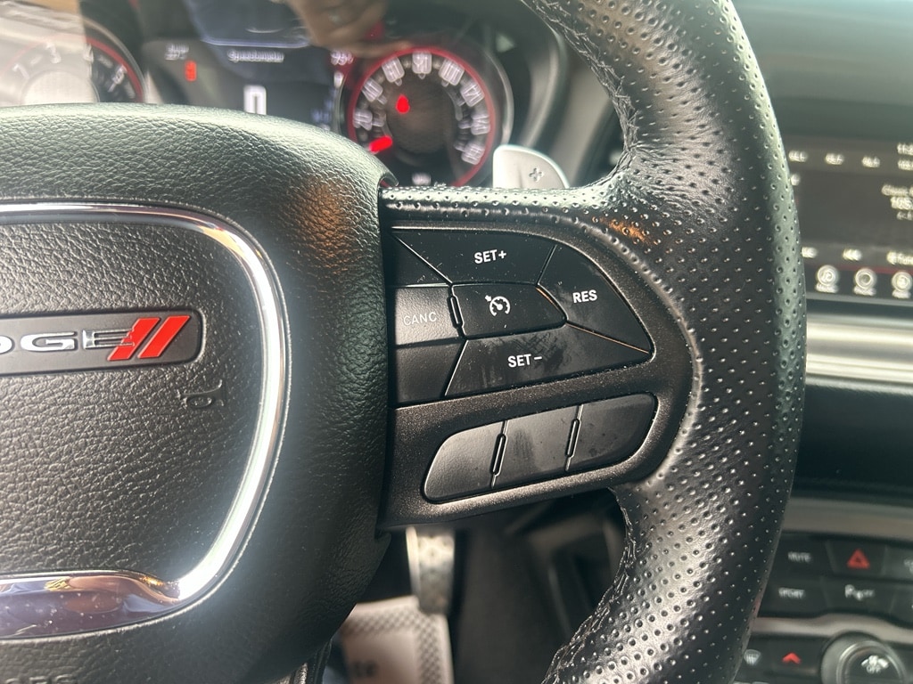 This mid-size car offers Apple CarPlay for seamless connectivity. It features a hands-free Bluetooth phone system. The state of the art park assist system will guide you easily into any spot. The vehicle has a clean CARFAX vehicle history report. Protect the Dodge Challenger from unwanted accidents with a cutting edge backup camera system. Never get into a cold vehicle again with the remote start feature on this vehicle. Good News! This certified CARFAX 1-owner vehicle has only had one owner before you. This model offers Android Auto for seamless smartphone integration. This model keeps you comfortable with Auto Climate. The vehicle has a V8, 5.7L high output engine. The Dodge Challenger gleams with a flashy red exterior. Set the temperature exactly where you are most comfortable in this unit. The fan speed and temperature will automatically adjust to maintain your preferred zone climate. Enjoy the incredible handling with the rear wheel drive on this mid-size car.