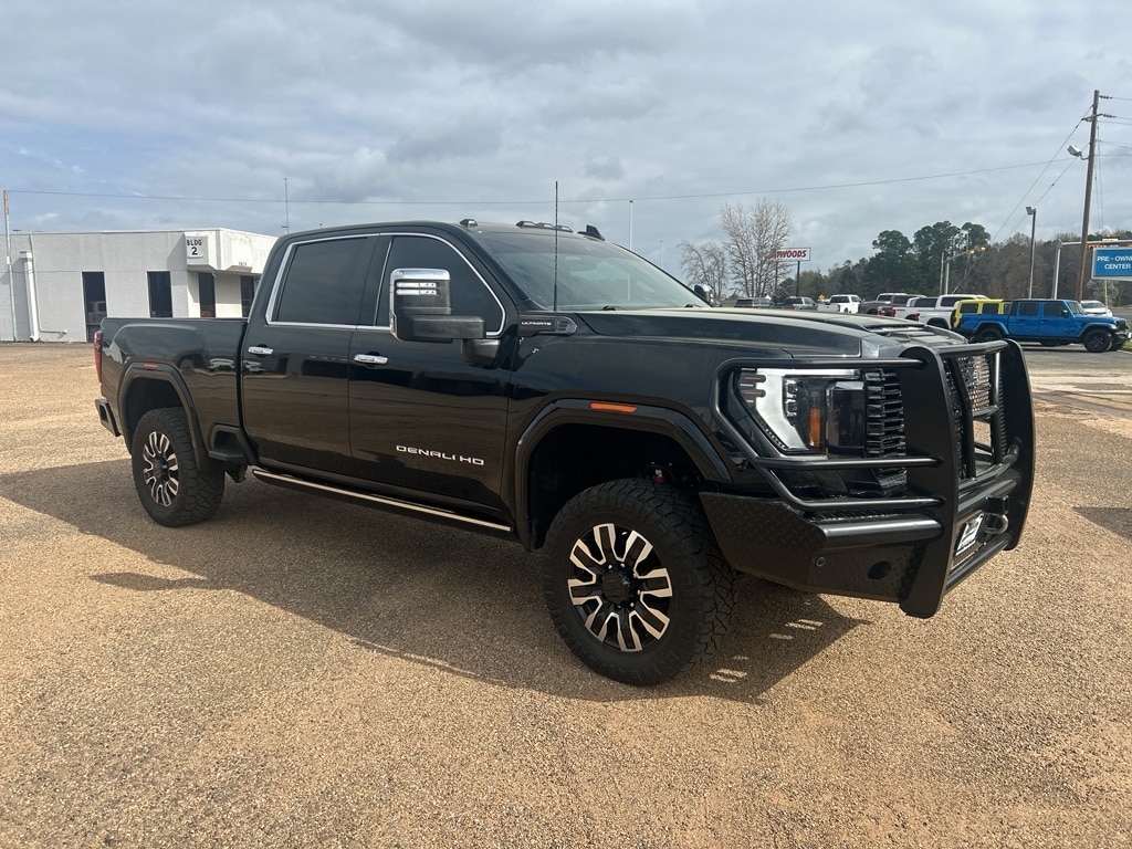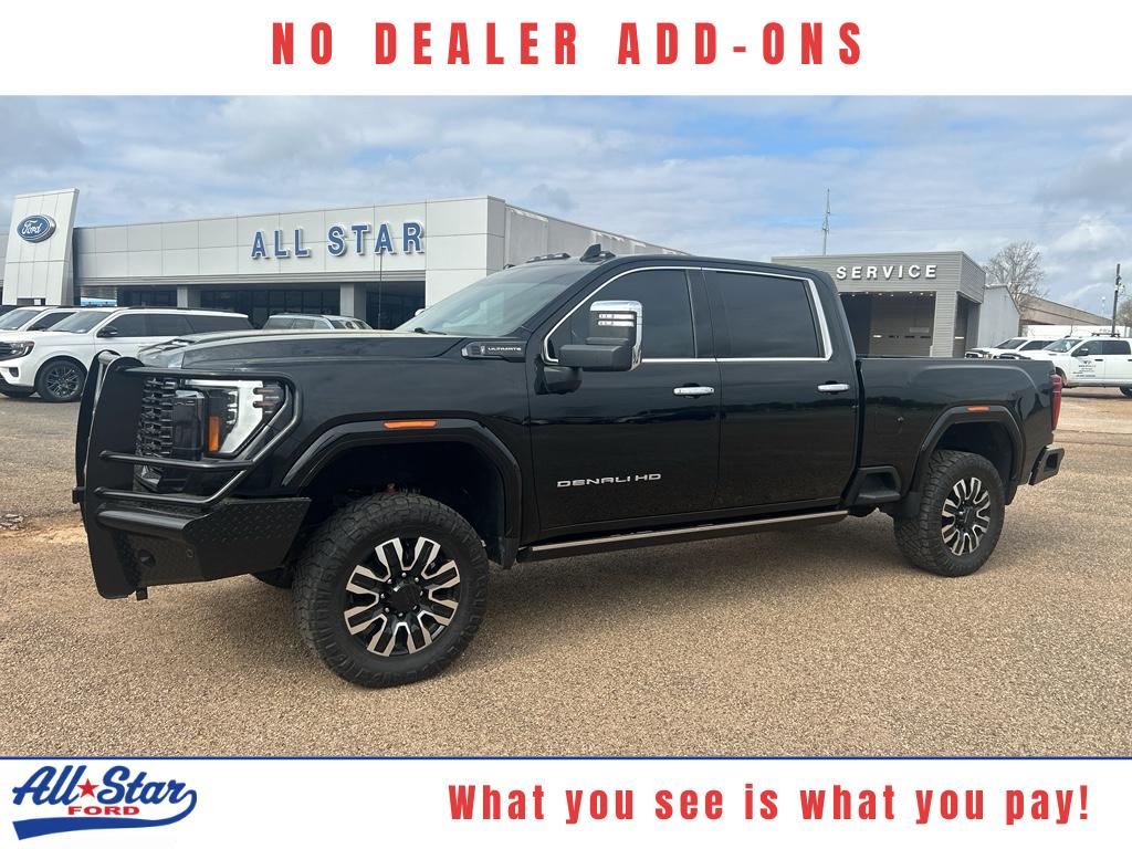 2024 GMC Sierra 2500 Denali Ultimate 4WD â" 6.6L V8 Diesel, located in Kilgore, TX. This high-spec diesel pickup pairs commanding performance with ultra-premium comfort, and it's priced to be the best value in the region. Powered by a robust 6.6L V8 Duramax diesel and four-wheel drive, the GMC Sierra 2500 Denali Ultimate delivers exceptional towing capability, confident off-road traction, and efficient highway cruising for heavy-duty work or long-distance travel. Inside, the cabin features refined materials and advanced technology designed for convenience and safety. Stay connected hands-free with Bluetooth and steering wheel audio controls that keep communication and entertainment within easy reach. A premium BOSE stereo provides immersive sound for every drive, while the heated steering wheel adds winter comfort and luxurious touch-point warmth. Active safety features include Cross-Traffic Alert to help prevent collisions when backing out of tight spaces, enhancing driver awareness in busy parking lots or on crowded streets. Additional comfort and convenience amenities make long hauls and daily commutes equally enjoyable. Located in Kilgore, TX, this 2024 GMC Sierra 2502 Denali Ultimate 4WD with the 6.6L V8 diesel offers top-tier capability, safety, and luxury at the best price available locally. Contact us for a test drive and experience the performance and refinement of this exceptional heavy-duty pickup.