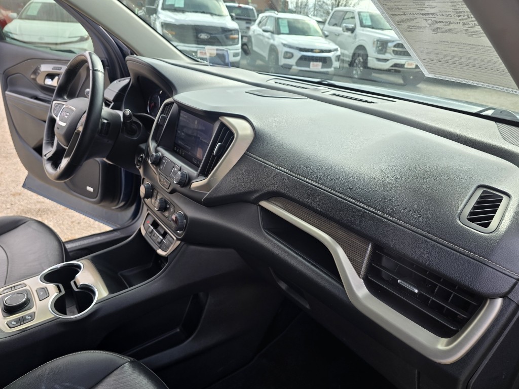 Conquer any rainy, snowy, or icy road conditions this winter with the all wheel drive system on this unit. This vehicle offers Automatic Climate Control for personalized comfort. The high efficiency automatic transmission shifts smoothly and allows you to relax while driving. Engulf yourself with the crystal clear sound of a BOSE sound system in the GMC Terrain. Protect this unit from unwanted accidents with a cutting edge backup camera system. Impresses the most discerning driver with the deep polished blue exterior on the vehicle. Good News! This certified CARFAX 1-owner vehicle has only had one owner before you. The GMC Terrain has a clean CARFAX vehicle history report. Set the temperature exactly where you are most comfortable in this GMC Terrain. The fan speed and temperature will automatically adjust to maintain your preferred zone climate. This unit warns of approaching vehicles with Cross-Traffic Alert. This vehicle features cruise control for long trips. The Electronic Stability Control will keep you on your intended path. This mid-size suv has a 4 Cyl, 1.5L high output engine. Enjoy the tried and true gasoline engine in this vehicle. The GMC Terrain features a hands-free Bluetooth phone system. Keep your hands warm all winter with a heated steering wheel in the GMC Terrain . Quickly unlock this model with keyless entry. This 2024 GMC Terrain 's Lane Departure Warning helps keep you in your lane. Lane Keep Assist in this 2024 GMC Terrain helps maintain safe driving by gently steering to stay within the lane. The leather seats in this unit are a must for buyers looking for comfort, durability, and style. Help alleviate lower back pain with the driver seat lumbar support in this unit. The spacious cabin accommodates your family and friends in comfort. Take it to the mountains or the beach. this 2024 GMC Terrain can handle it all. The installed navigation system will keep you on the right path. Keep safely connected while in this unit with OnStar. You may enjoy services like Automatic Crash Response, Navigation, Roadside Assistance and Hands-Free Calling. Load groceries and much more with ease into the GMC Terrain thanks to the power liftgate. Never get into a cold vehicle again with the remote start feature on the vehicle.
