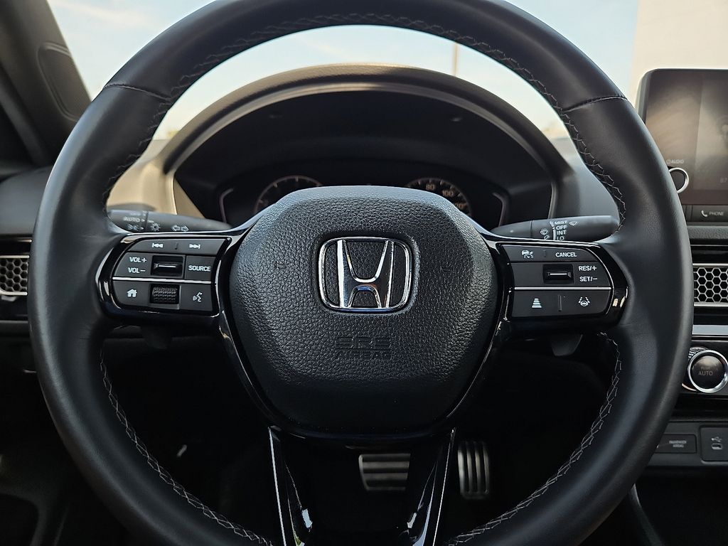 The leather seats in this 2025 Honda Civic are a must for buyers looking for comfort, durability, and style. Protect this Honda Civic from unwanted accidents with a cutting edge backup camera system. This small car features a hands-free Bluetooth phone system. This model offers Automatic Climate Control for personalized comfort. This 2025 Honda Civic has auto-adjust speed for safe following. This 2025 Honda Civic offers Apple CarPlay for seamless connectivity. This vehicle is a certified CARFAX 1-owner. This vehicle offers Android Auto for seamless smartphone integration. Never get into a cold vehicle again with the remote start feature on the Honda Civic. This model's Forward Collision Warning feature alerts drivers to potential front-end collisions. This Honda Civic has an elegant black exterior finish. Front wheel drive on this 2025 Honda Civic gives you better traction and better fuel economy. The Honda Civic has a 4 Cyl, 2.0L high output engine.