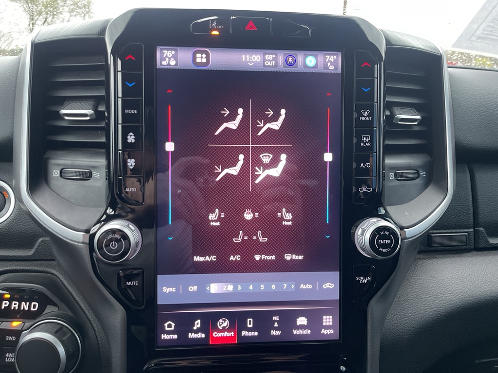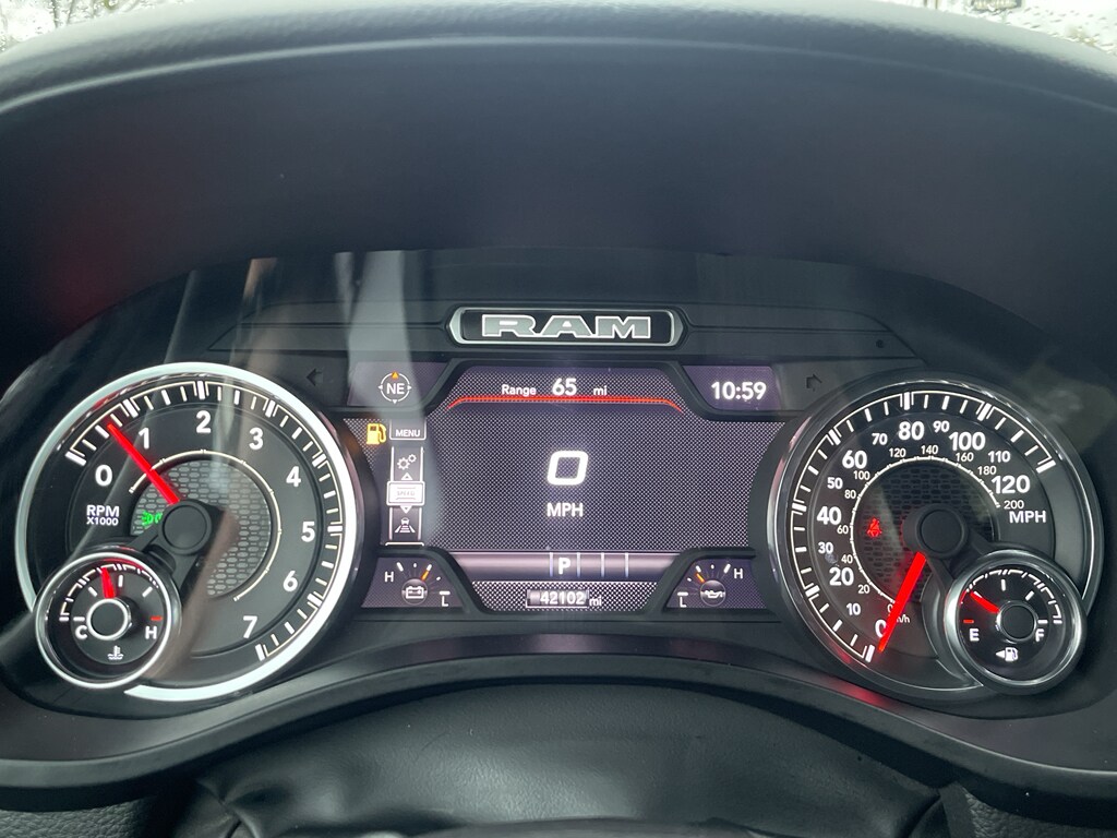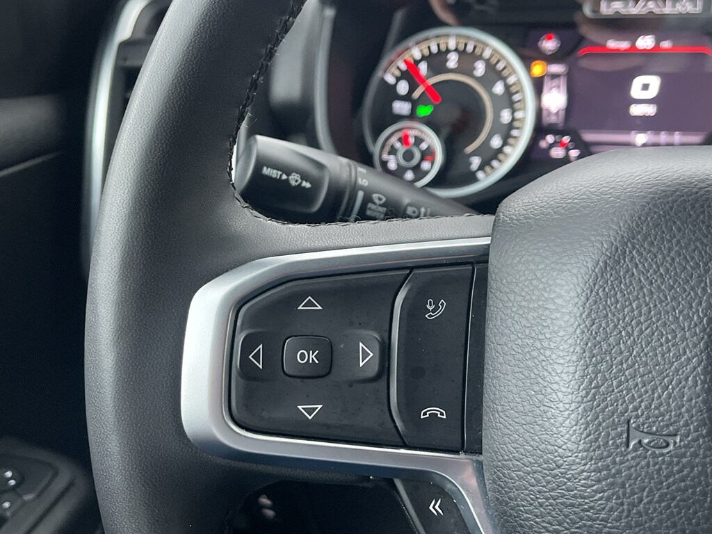 with XM/Sirus Satellite Radio you are no longer restricted by poor quality local radio stations while driving the vehicle. Anywhere on the planet, you will have hundreds of digital stations to choose from. This vehicle is a certified CARFAX 1-owner. This vehicle has a clean CARFAX vehicle history report. The Ram 1500 has automated speed control that adjusts to maintain a safe following distance, enhancing highway driving convenience. Never get into a cold vehicle again with the remote start feature on this unit. This 1/2 ton pickup's Forward Collision Warning feature alerts drivers to potential front-end collisions. This unit offers Android Auto for seamless smartphone integration. This model's Lane Departure Warning helps keep you in your lane. This Ram 1500 offers Apple CarPlay for seamless connectivity. This 1/2 ton pickup features a hands-free Bluetooth phone system. Protect the vehicle from unwanted accidents with a cutting edge backup camera system. The vehicle offers Automatic Climate Control for personalized comfort.
